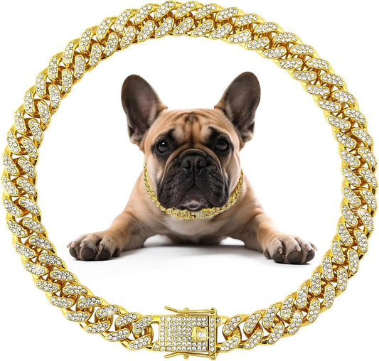 Dog Chain Diamond Collar Walking Metal Chain Necklace with Secure Buckle Pet Cuban Style Collar Jewelry Accessories for Small Medium Large Dog Cats